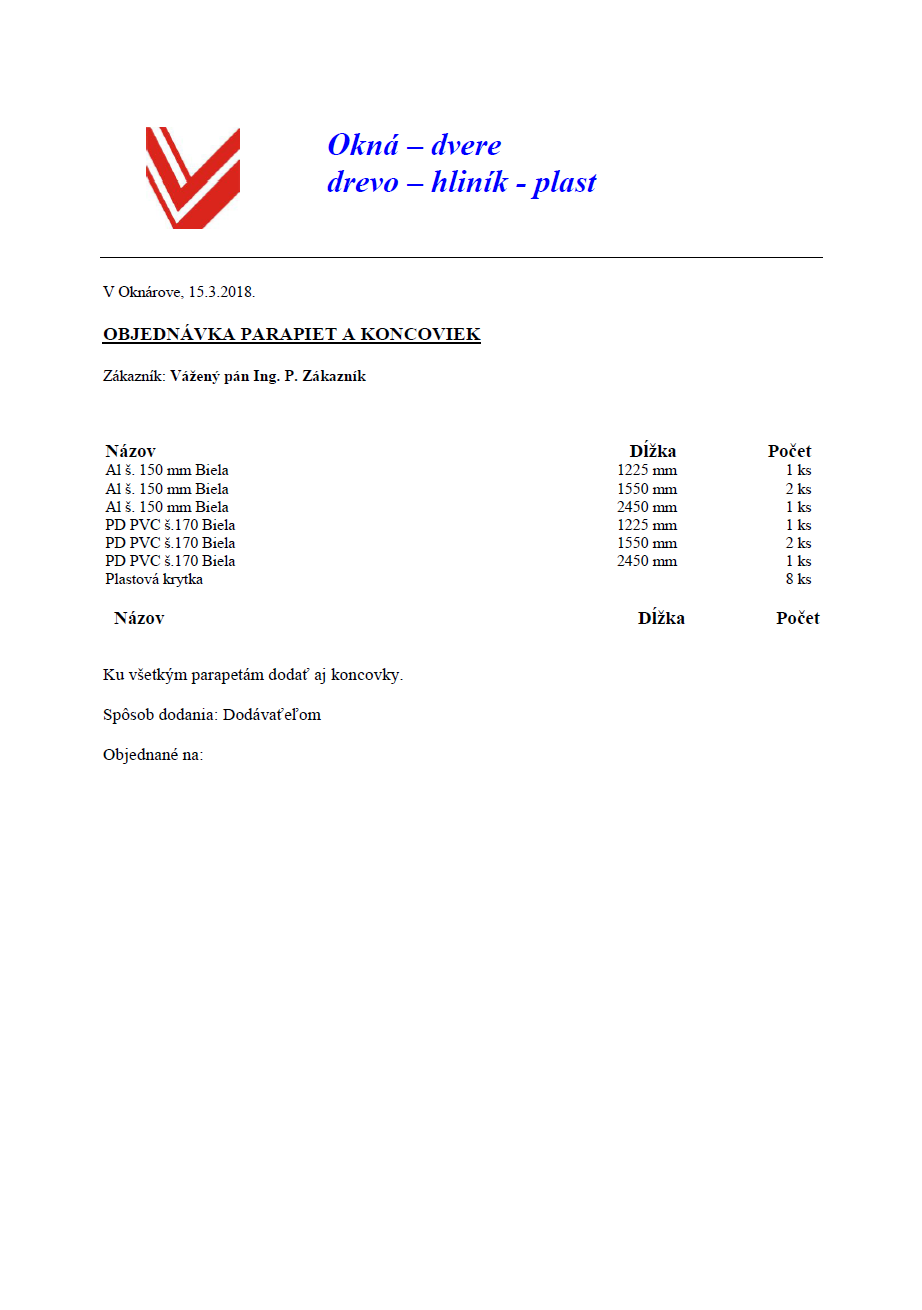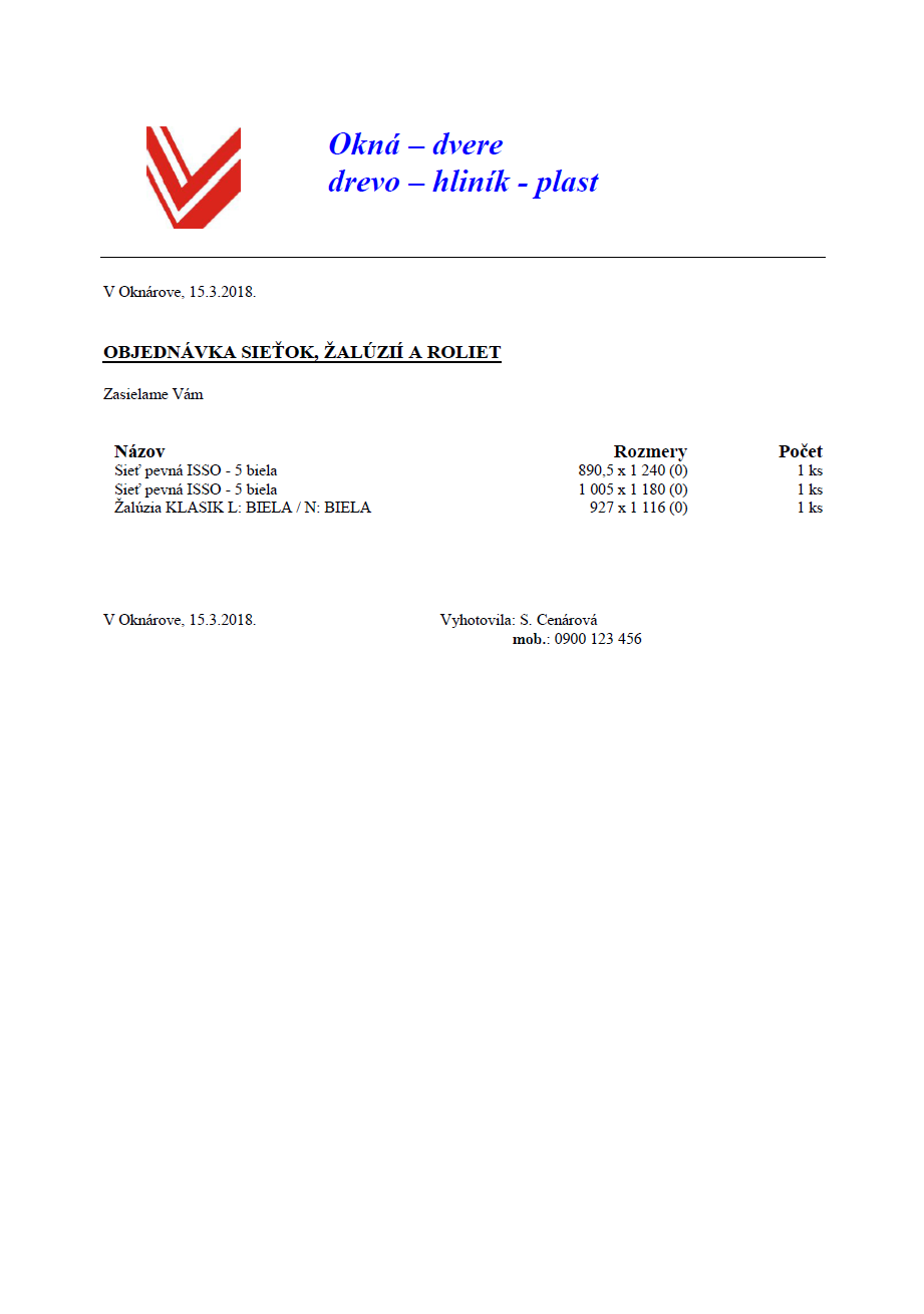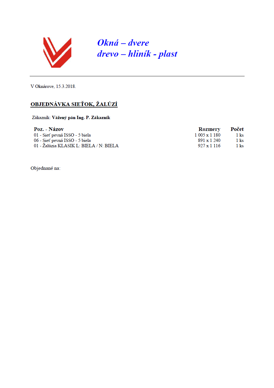 Objednávka okien
