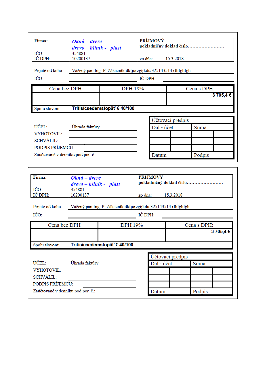 Príjmový doklad na celú sumu