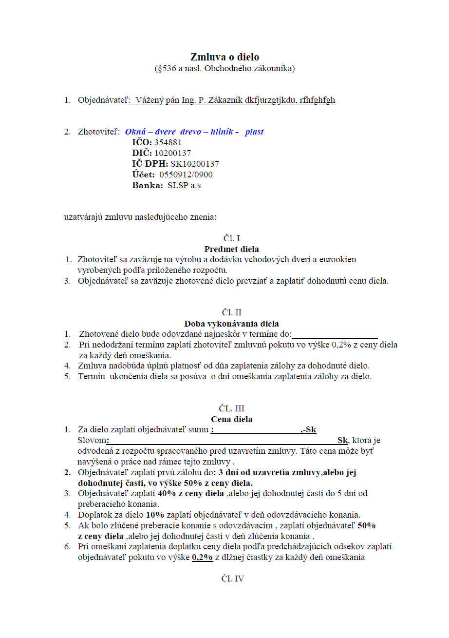 Zmluva o dielo - strana 1