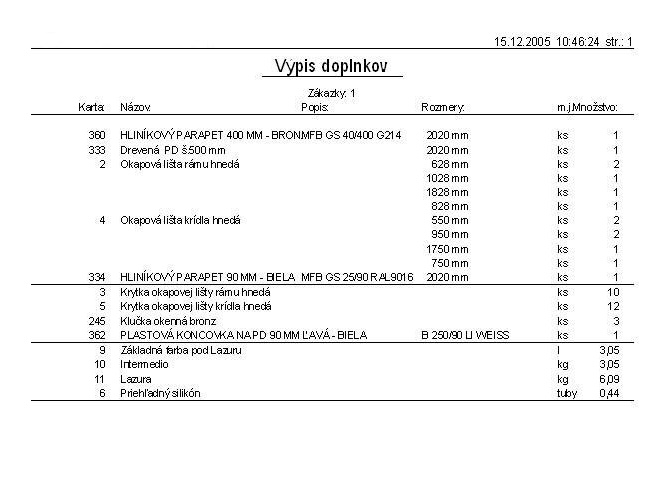 Výpis doplnkov