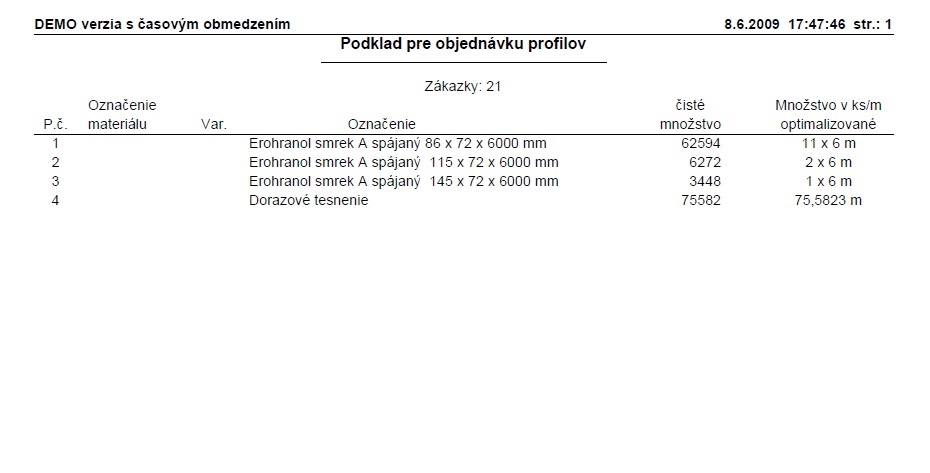 Objednávka profilov optimalizovaná na tyče
